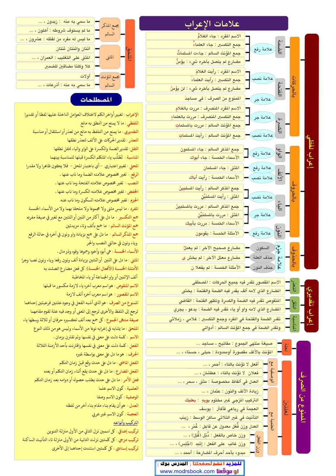 ملخص رائع لكل قواعد النحو في تسع ورقات Pdf صور
