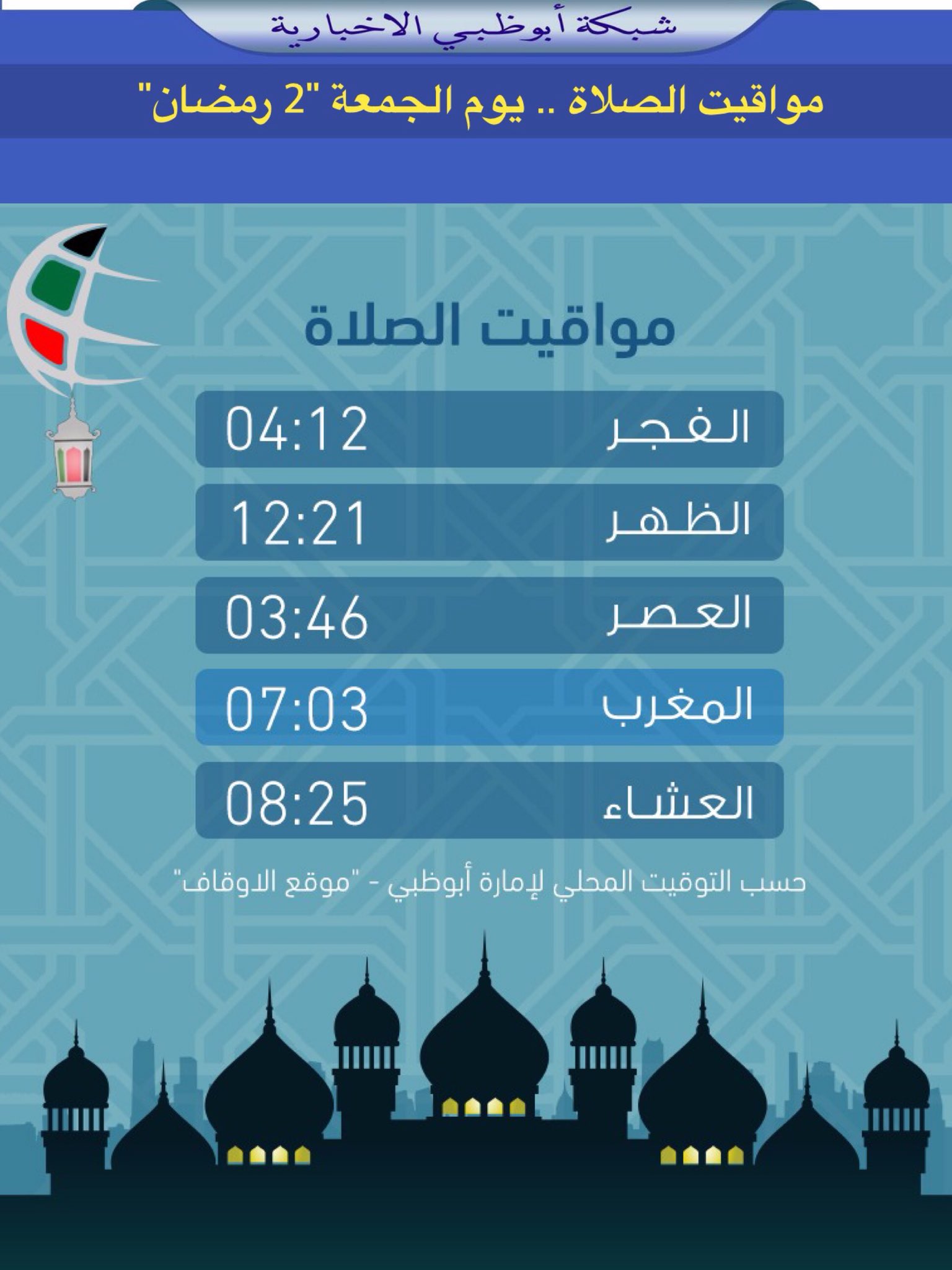 Uzivatel شبكة أبوظبي Na Twitteru مواقيت الصلاة يوم الجمعة 2 رمضان